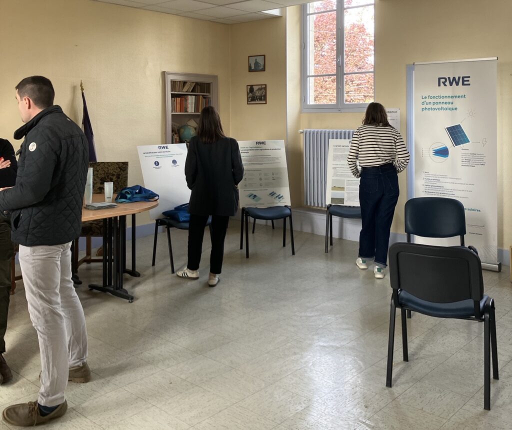 Le 25 avril 2025 a eu lieu une permanence d’information à la mairie de Migny. L’objectif était de présenter le projet aux habitants de Migny. Des panneaux illustrant les enjeux du projet, la zone d’étude et les retombées pour le territoire ont été présentés.